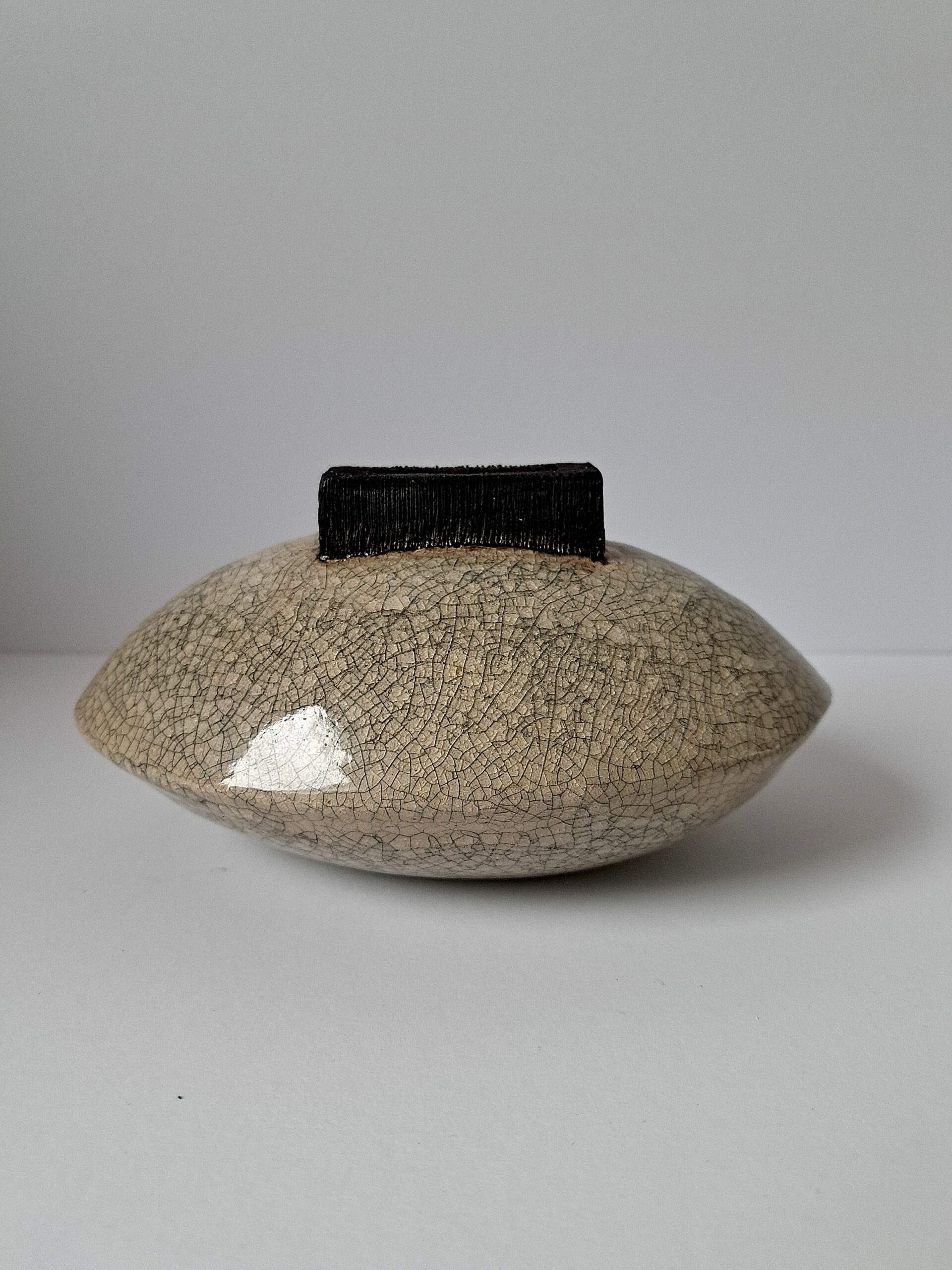 Elektrobrand 1250°, weißer & schwarzer Steinzeugton, glasiert, B 19cm, H 10cm