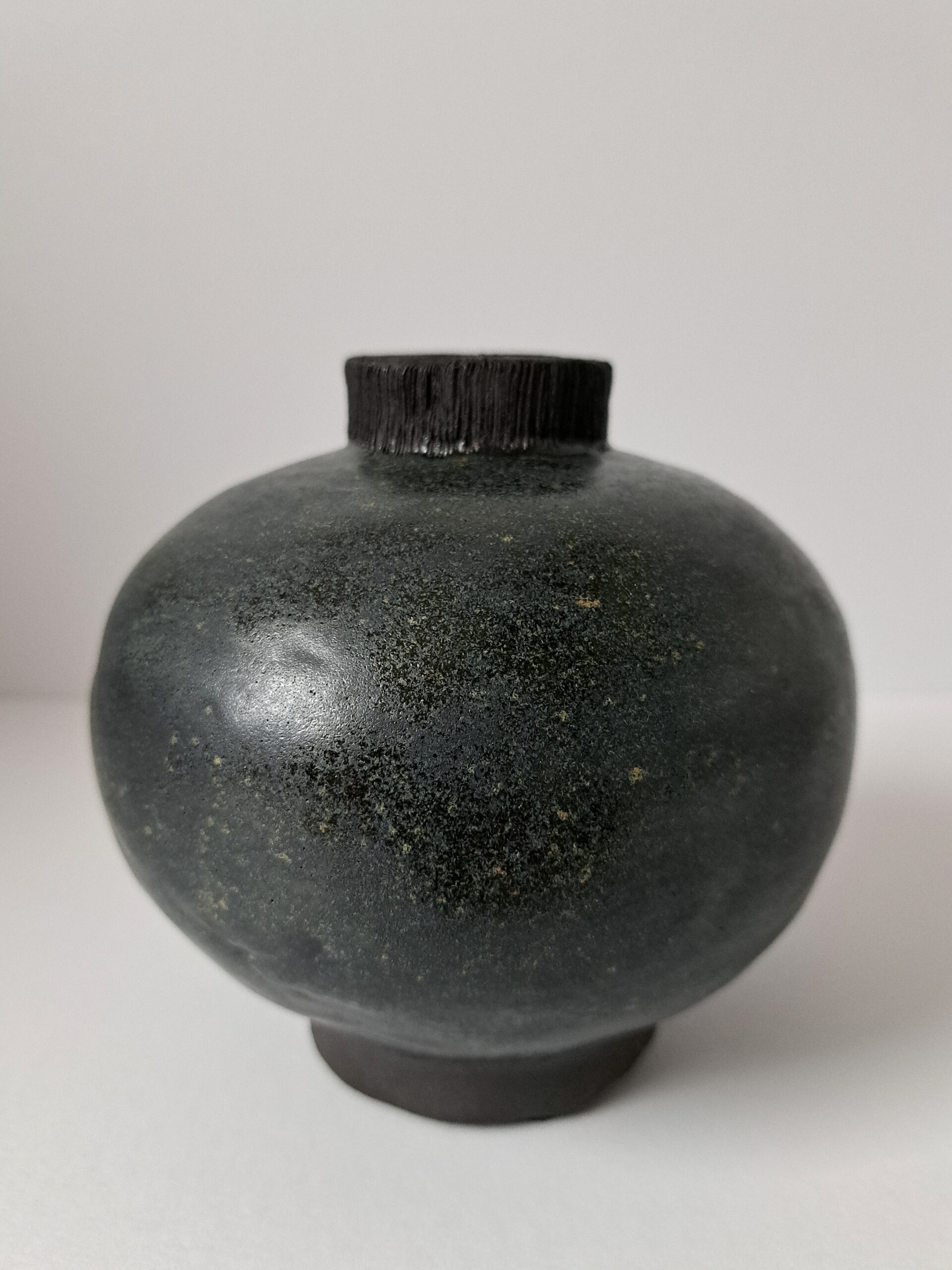 Elektrobrand 1250°, schwarzer Steinzeugton, glasiert, Ø 13cm, H 12,5cm