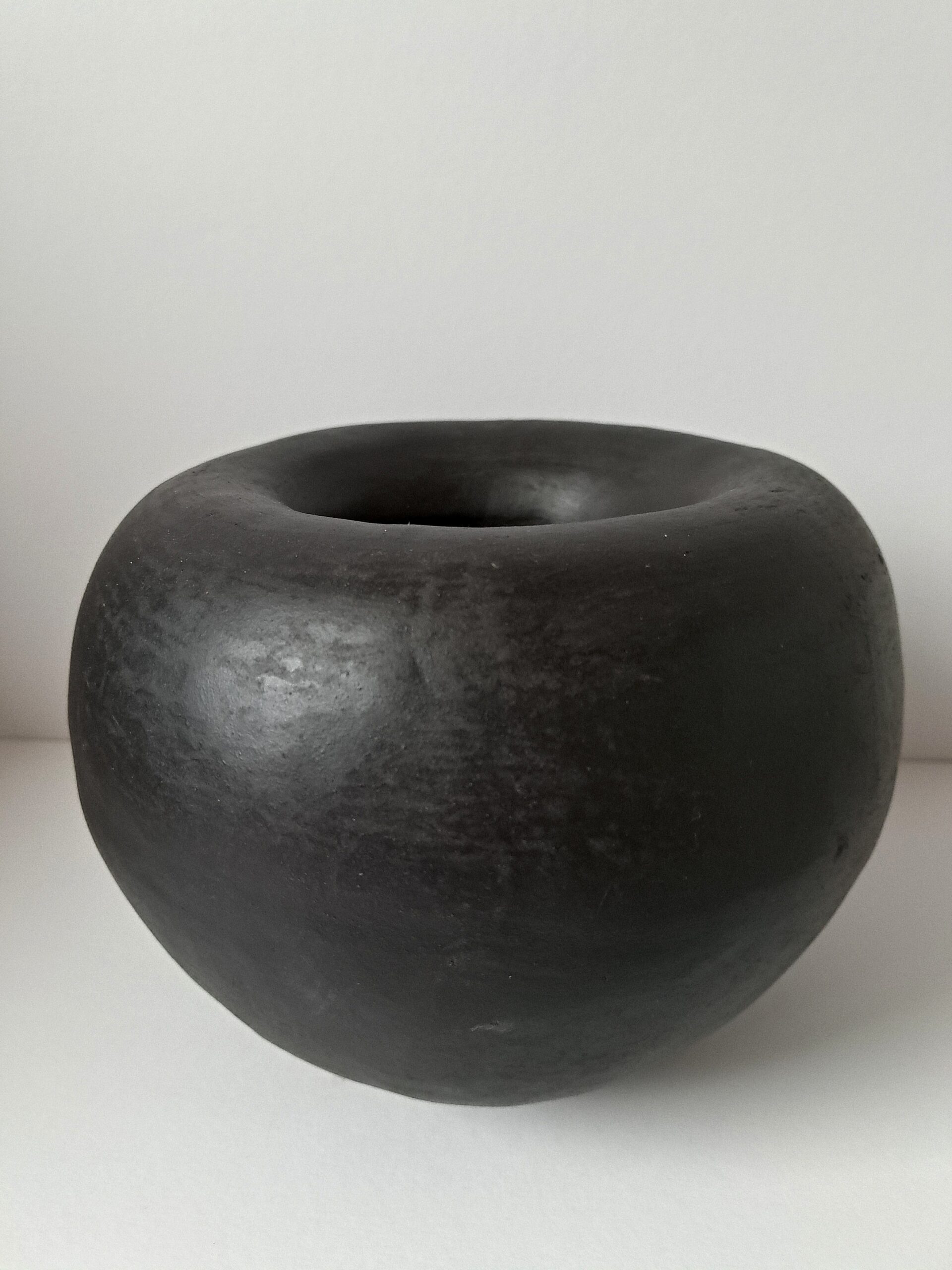 Elektrobrand 1250°, schwarzer Steinzeugton, handpoliert, Ø 21,5cm, H 16,5cm