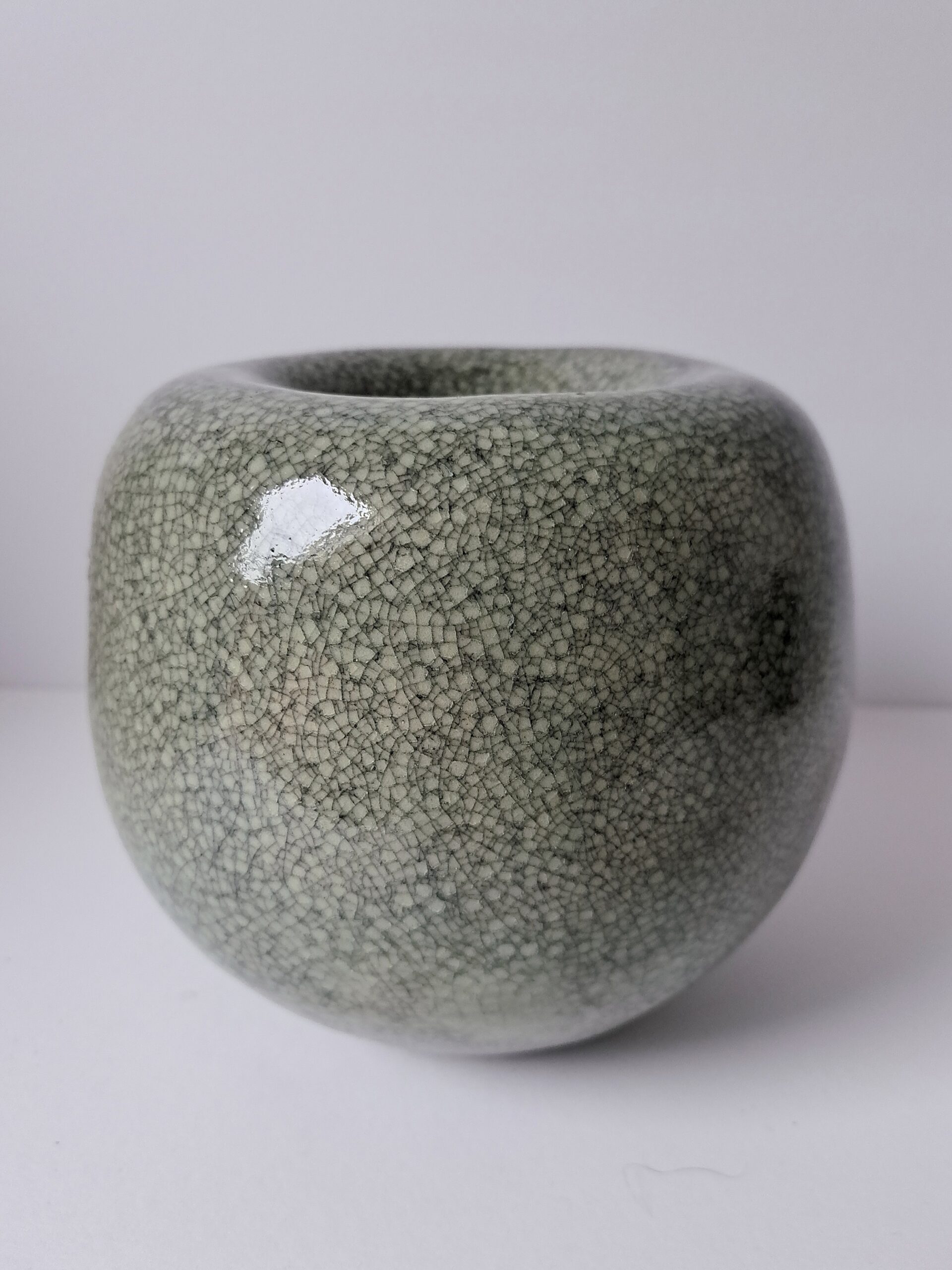 Elektrobrand 1250°, weißer Steinzeugton, glasiert, Ø 16,5cm, H 15cm – verkauft